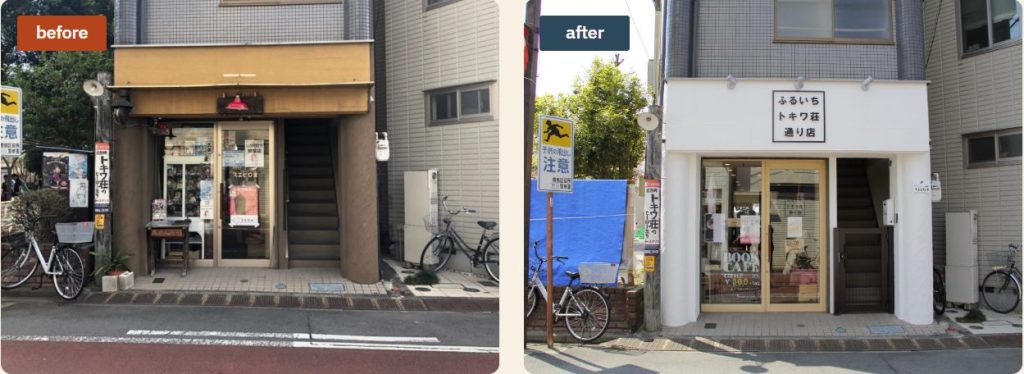 マンガの街・南長崎の活性化を目的に、新たな“集いの場”として改修されたブックカフェ「ふるいちトキワ荘通り店」。2020年7月にトキワ荘跡地に開業した「トキワ荘マンガミュージアム」の来街者により楽しんでいただけるよう、空き家をリノベーションを行いました。人と人との「つながり」「体験」を目的としたイベント&サービスの提供や、既存の古本市場と連動する新たな展開拠点として、街に愛される存在となりつつあります。