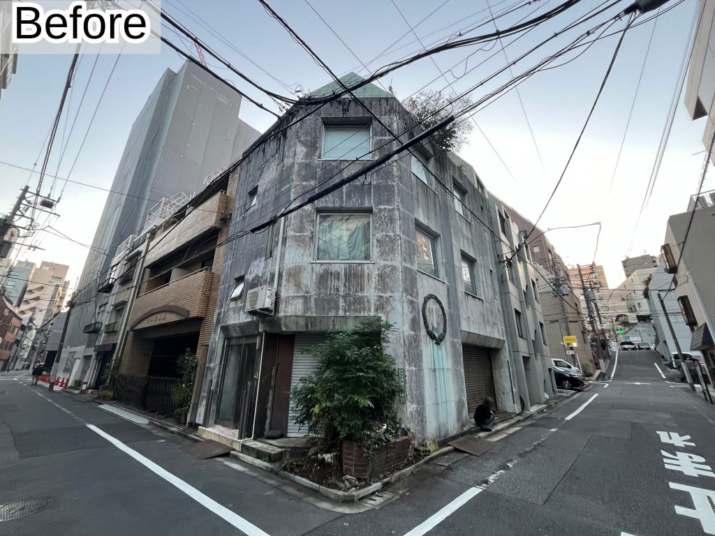 水川:文京区湯島にある物件です。これから工事に着手する物件なのですが、鉄筋コンクリート造4階建てのビルで、千代田線「湯島駅」から徒歩3~4分くらいの好立地にあります。もともと所有者様が事業をしながら住まわれていた自宅兼事務所でしたが、その後1~2年ほど空き家でした。築年数は50年以上経っていて、雨漏りやカビ、湿気など湿気が溜まり、カビの発生でかなり老朽化が進んだ状態だったんです。ですが、ご相談いただいた所有者様のお嬢様が、思い出のある建物を手放さずに活用したいというご相談を受け、宿泊施設としてリノベーションする形になりました。