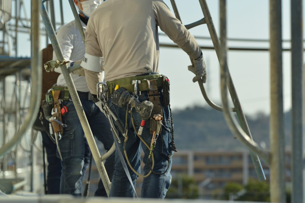 解体工事では、周辺への騒音や埃の飛散を抑えるために足場の設置と養生が欠かせません。足場は作業員の安全を確保するだけでなく、「労働安全衛生規則」においても設置が義務付けられており、重機作業の安全範囲を見極めるうえでも重要な役割を果たします。