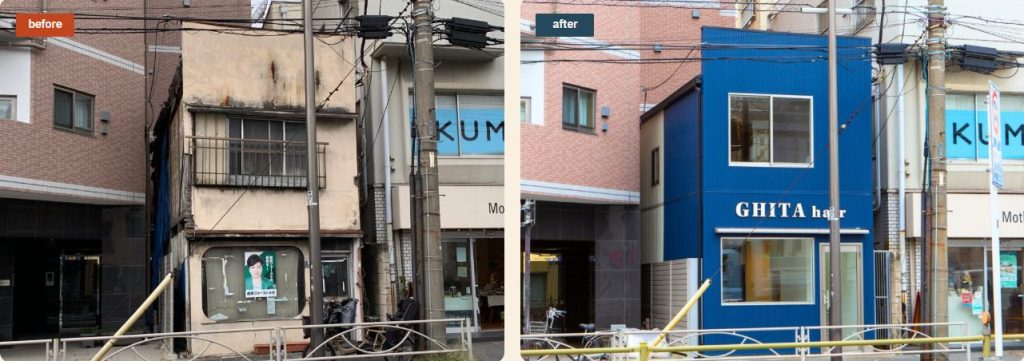 東京都品川区南大井にあった特定空き家認定寸前だった空き家を、美容室として再生した事例です。物件は京浜急行電鉄「立会川」駅から徒歩2分と駅近で、もともとは親族が運営していた住居兼店舗でしたが、廃業後は約20年間空き家の状態が続いていました。