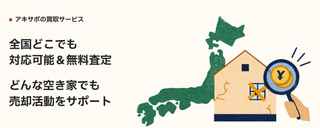 『空き家のコタエ』で価格目安を確認し、早期の現金化や手間をかけない売却を希望されるなら、『アキサポの空き家買取サービス』がおすすめです。