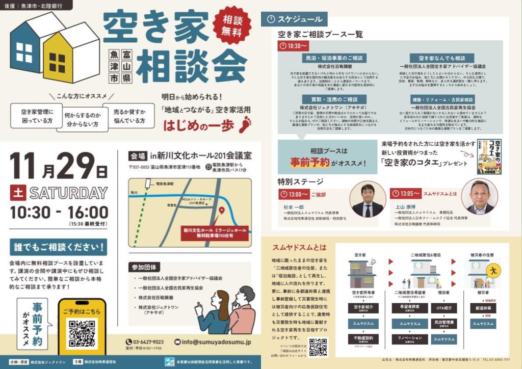3. 【11/29開催・参加無料】「明日から始められる!『地域とつながる』空き家活用はじめの一歩」空き家相談会 in富山県魚津市
