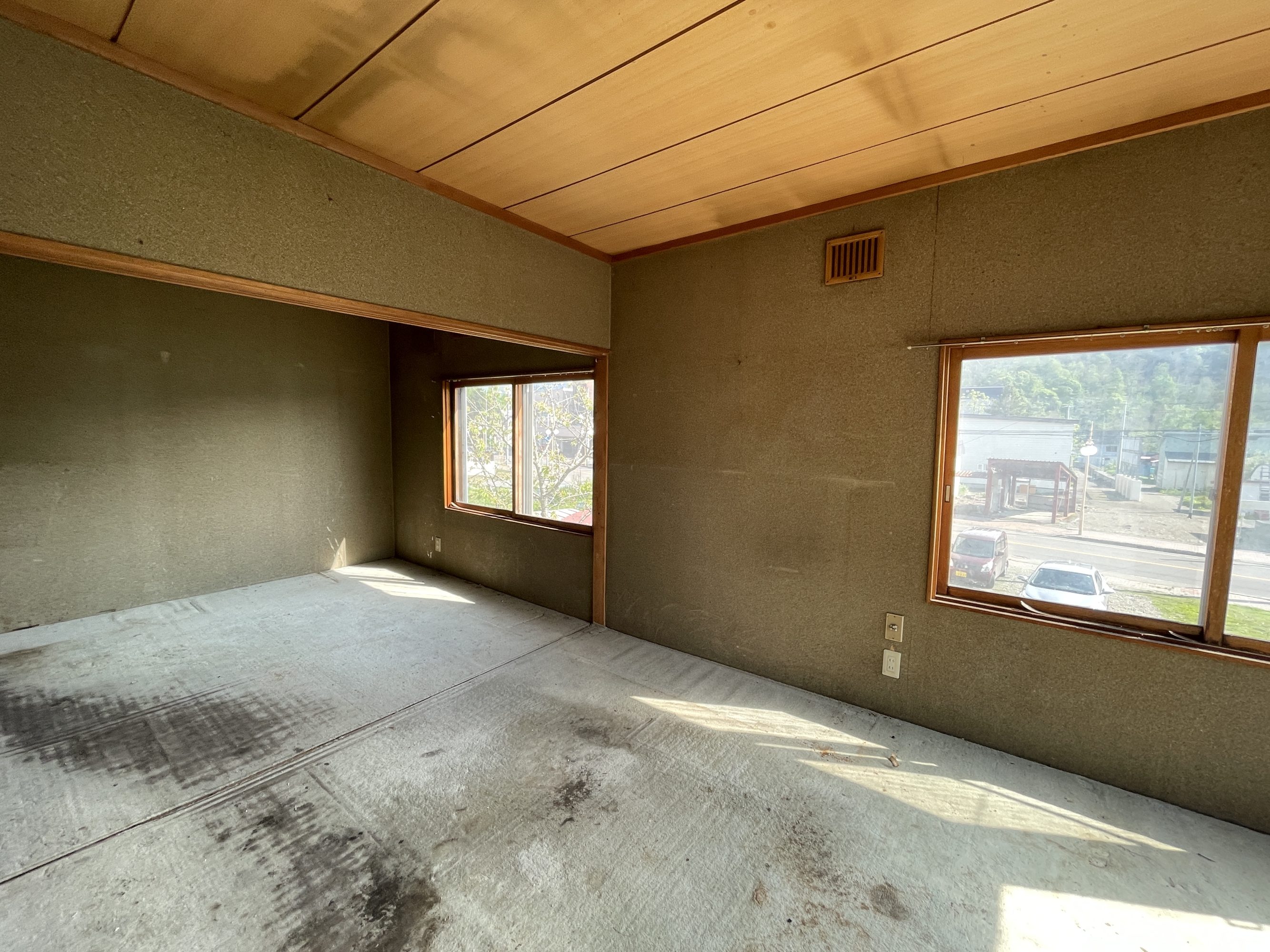 物件は北海道空知郡上砂川町にある昭和築の木造2階建てで、居宅と店舗部分を併せた建物に加え、物置などの附属建物もあり経年劣化や一部雨漏りも発生していました。